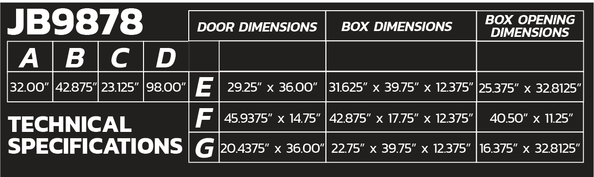 The JB9878 is designed with efficiency, durability, and flexibility in mind. With removable trad plate components, modern lighting, and an easy customizable shelving system, this service body is ideal for technicians and crews who need quick access and dependable storage in the field.